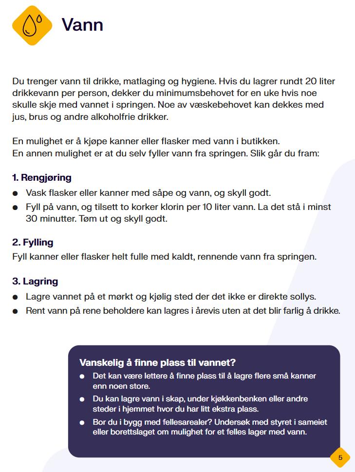 - Vann skaffer du i vannkranen, eller på butikken, før hendelsen inntreffer